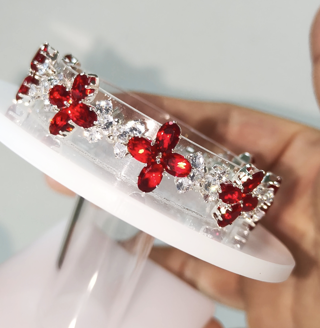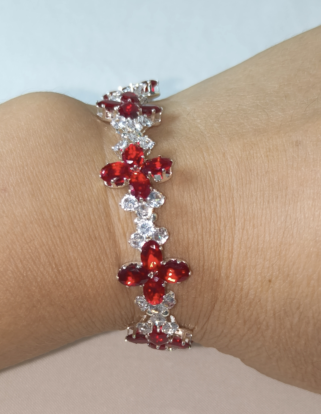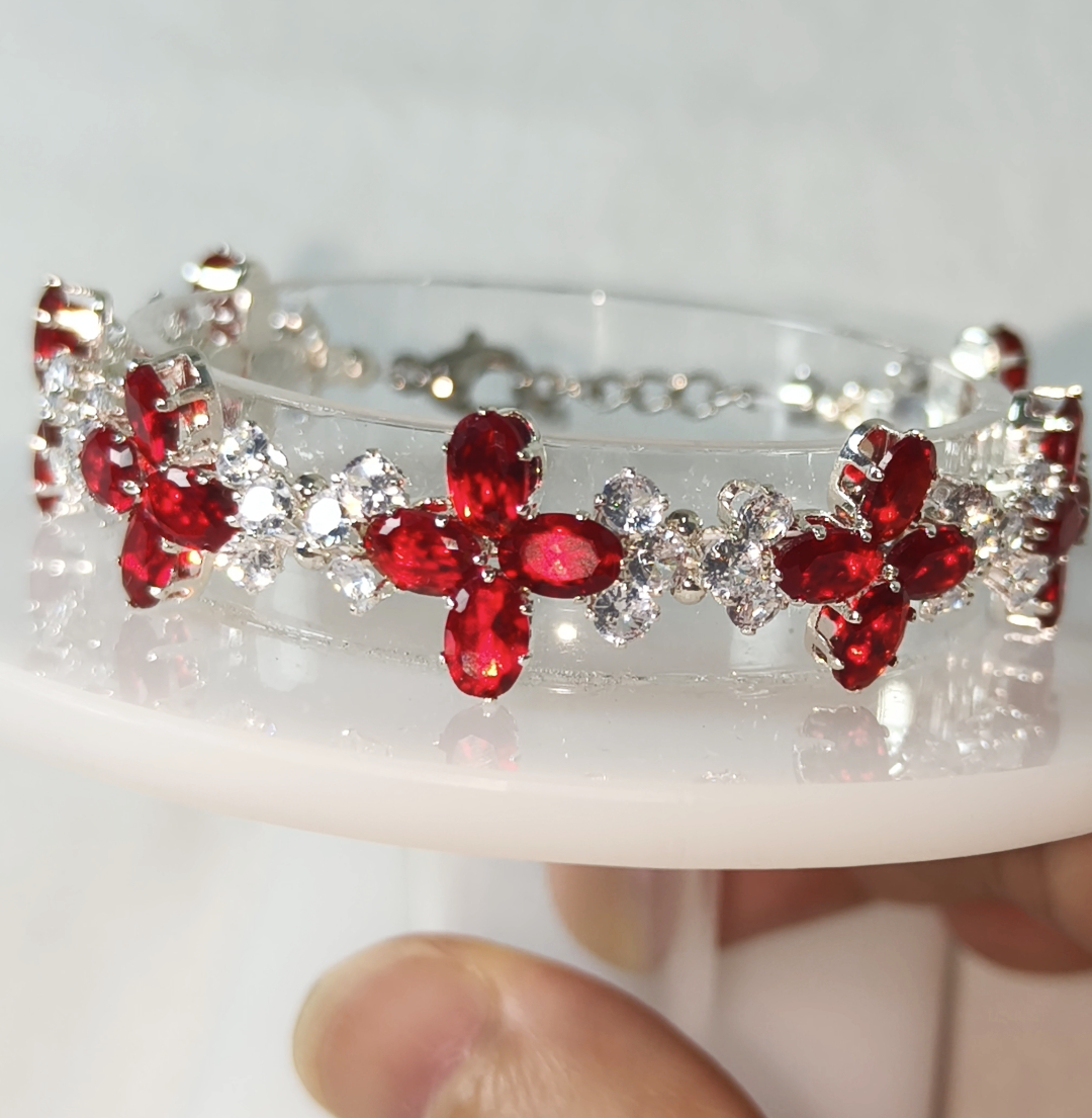 U085 Fortune Clover Bracelet,Lucky Ruby Red Clover Bracelet
