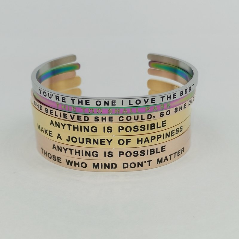 Make your custom personalized Mantra bangle, Create minimalist inspirational bangles with uplifting messages to get you through your days, Promote a lifestyle of optimism, positivity, and mindfulness.Convey affirmation and inspiration.